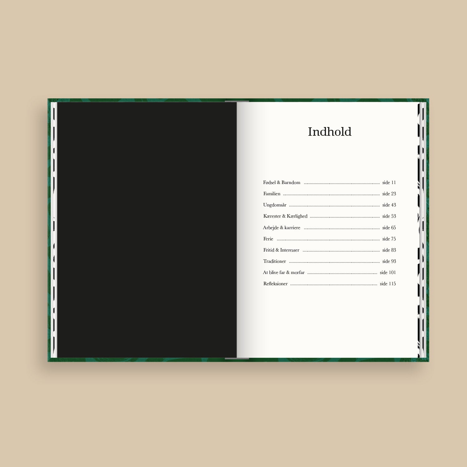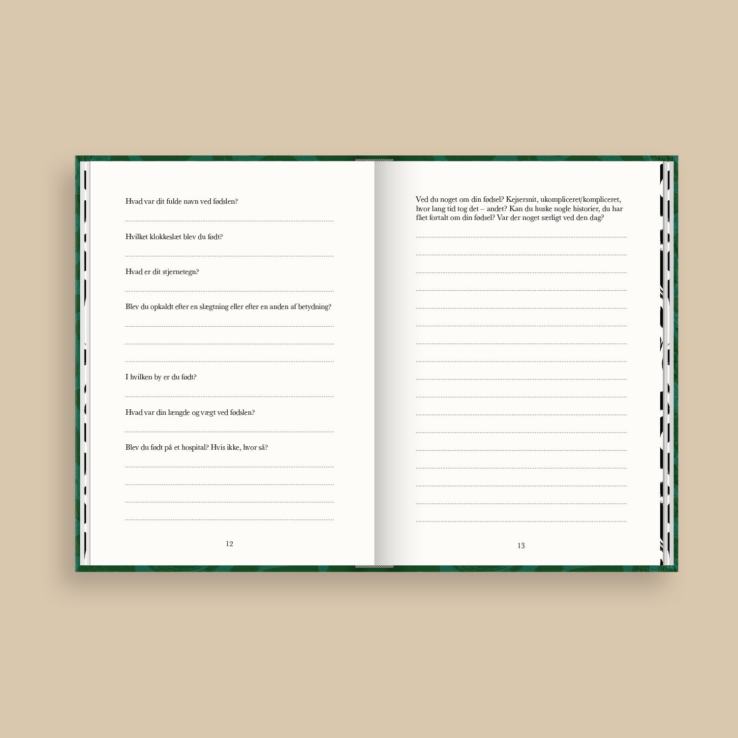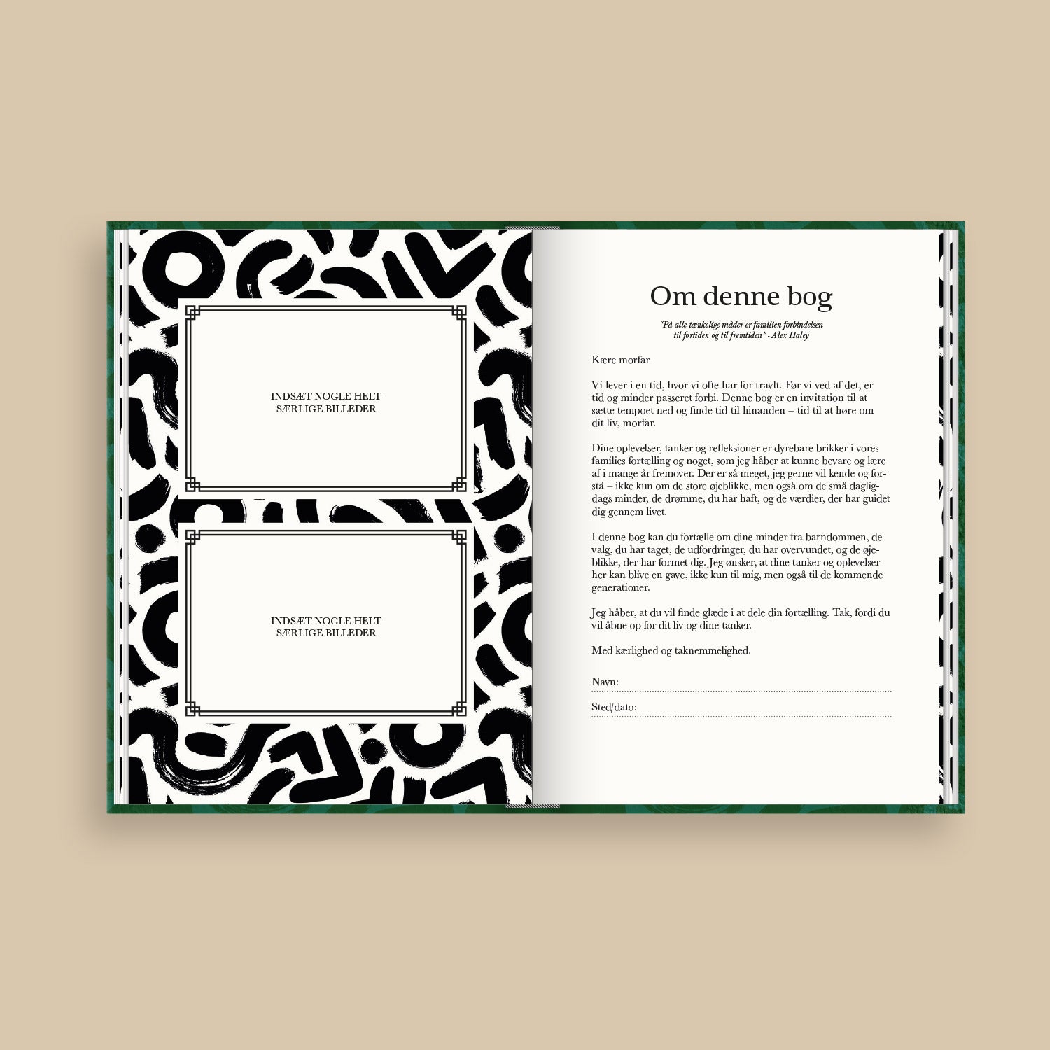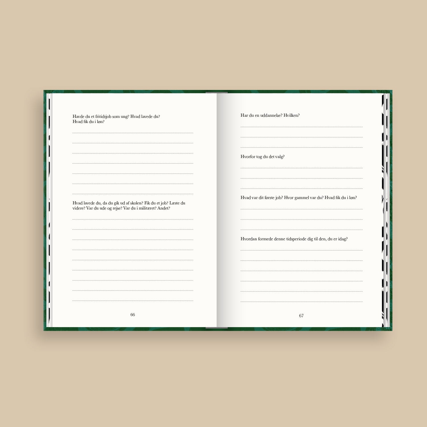 Vores bøger er designet med nøje udvalgte spørgsmål og skabeloner, der gør det nemt for alle at dele historier og minder. Man skal blot skrive svarerne, og bogen bliver til en personlig fortælling. Der er flere tomme sider hvor man selv kan tilføje mere