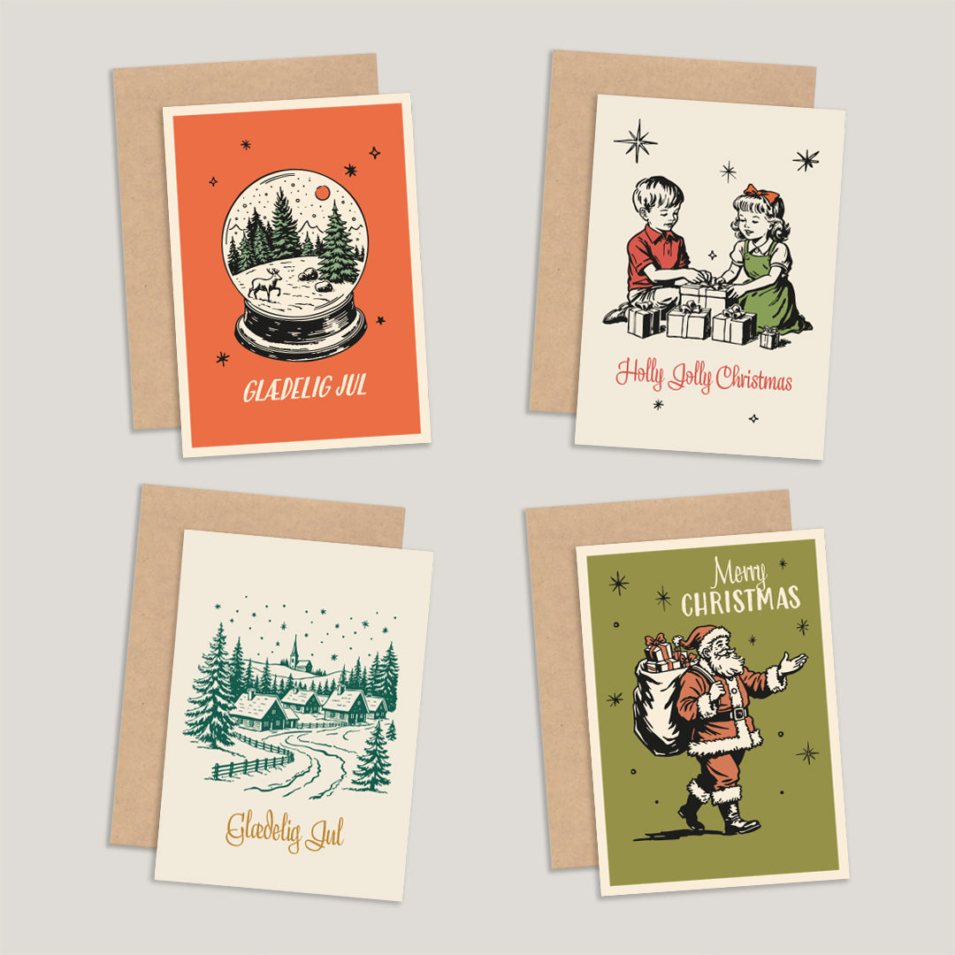 Gør dine julehilsner personlige med vores smukke retro julekort.